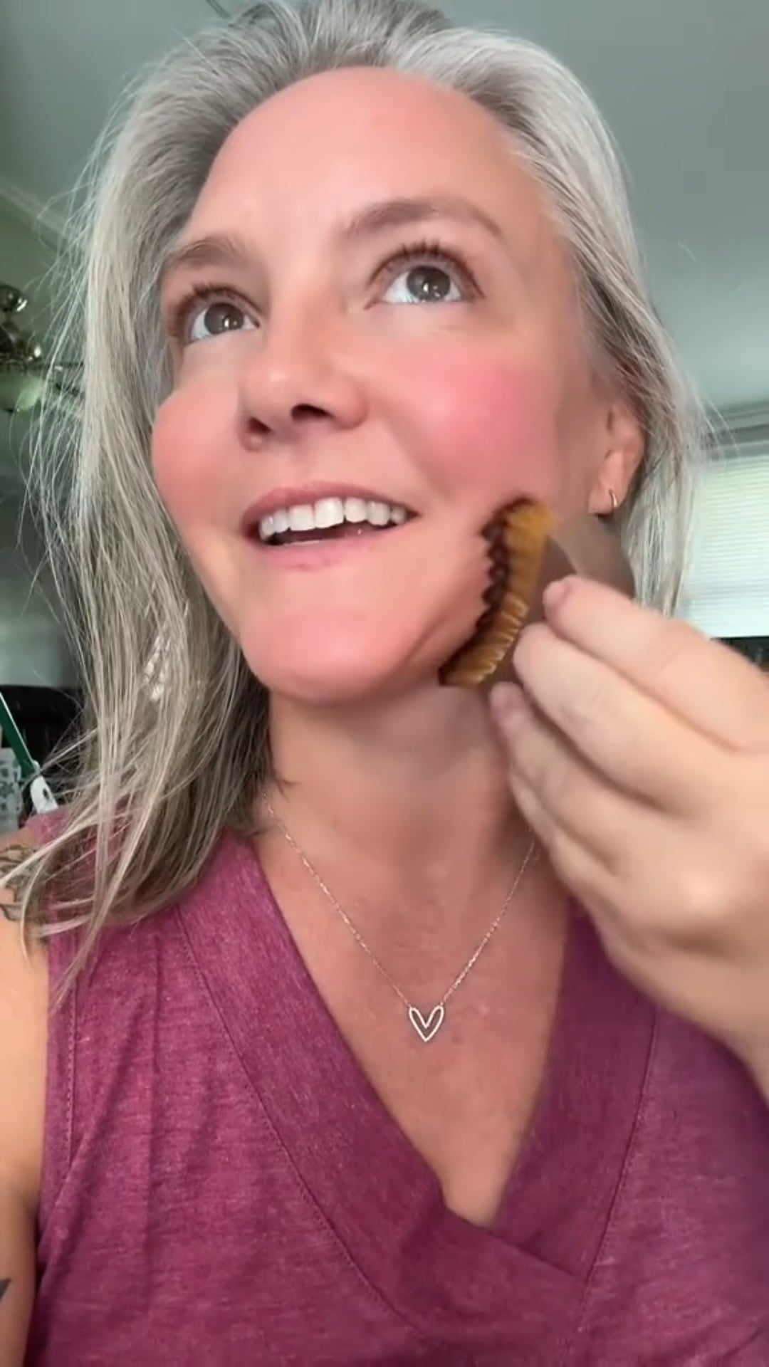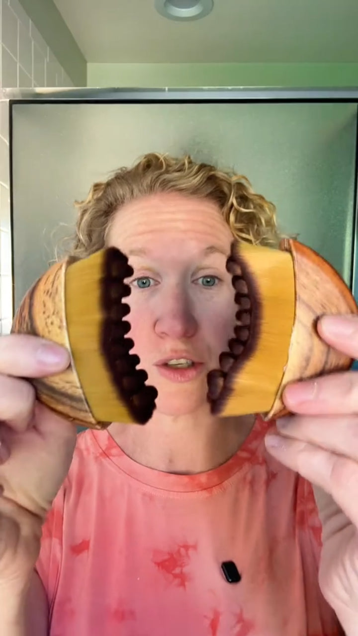 Use a feather-light touch. Unlike gua sha, you don’t need pressure. Just let the soft bristles glide over your skin.